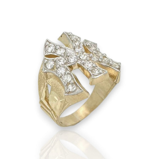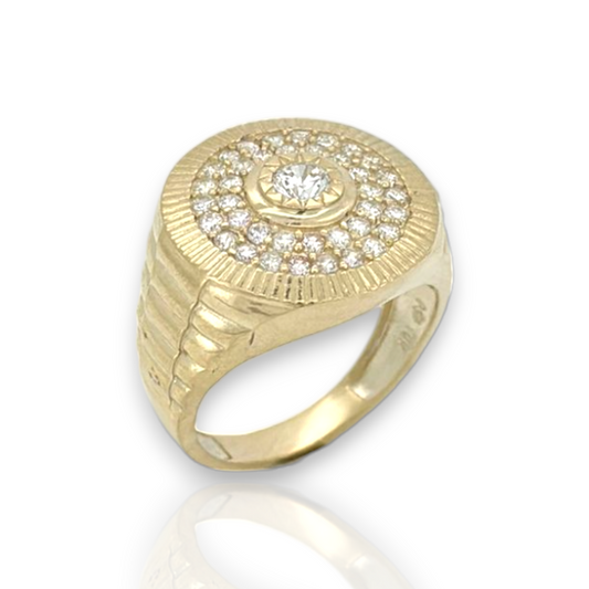 Full Round Flower CZ Ring - 10K Yellow Gold