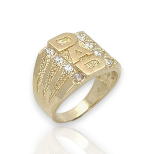 Mens DAD CZ Signet Ring - 10k Yellow Gold