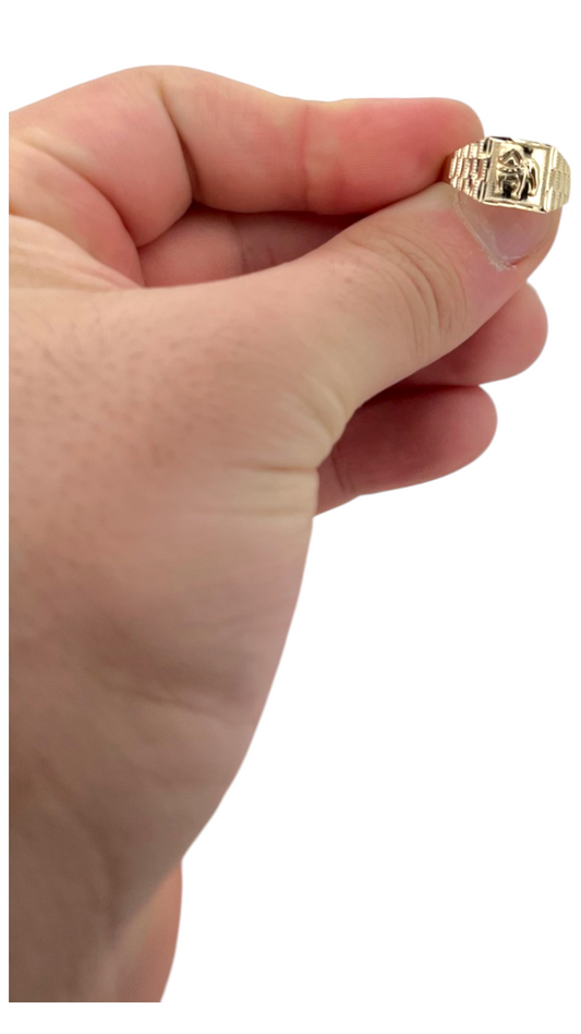 10K Yellow Gold Nugget Ring with French American Bulldog ring