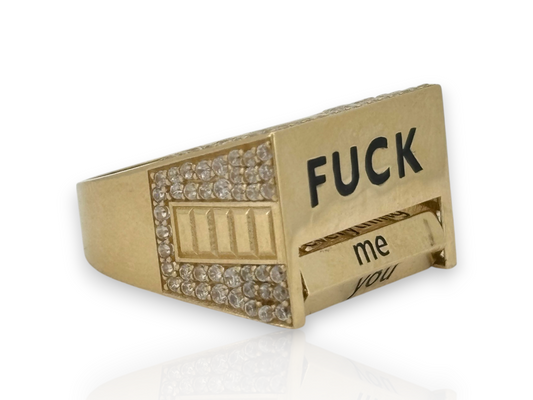 10k yellow gold Fuck / Love Spinning Choice - Elegant - Gold Ring - Special Roulette Inscription