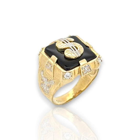 Dollar Sign Onyx Ring - 10k Yellow Gold