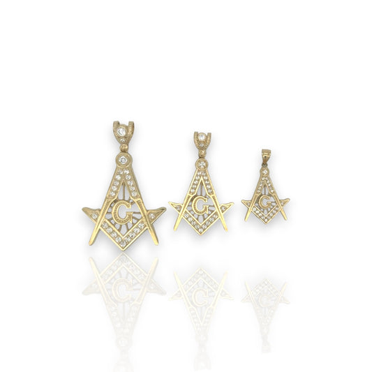 Masonic Symbol "Freemason" Cz Pendant - 14k Yellow Gold