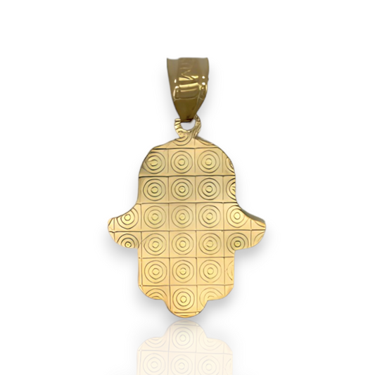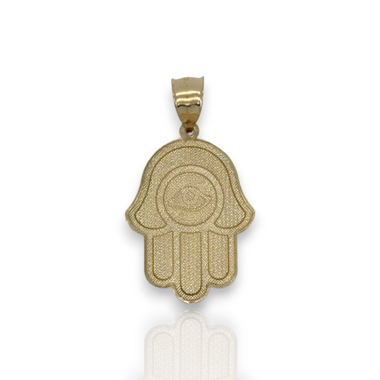Textured Hamsa Evil Eye Pendant - 10k Yellow Gold