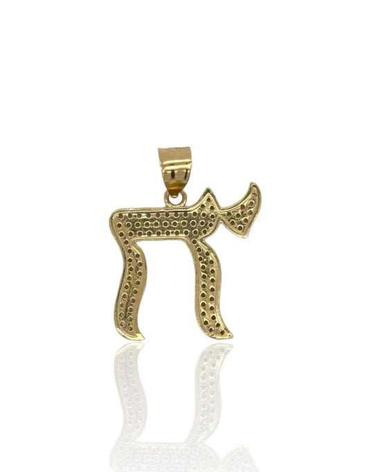 Chai Pendant With Cubic Zirconia CZ - 14k Yellow Gold