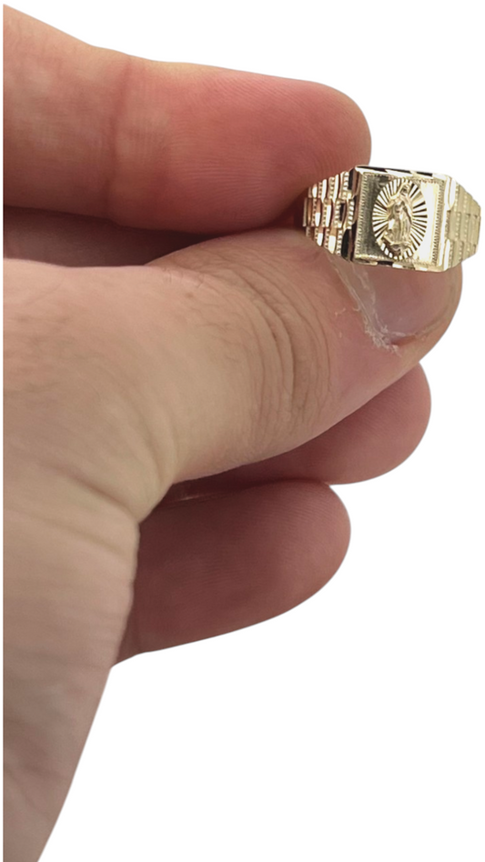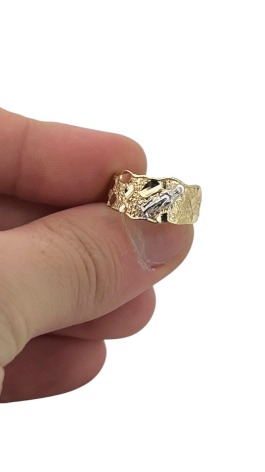 10K Yellow Gold Virgin Mary Guadalupe Two tone Ring - real yellow gold ring