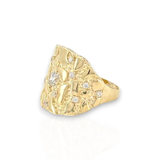 10K Yellow Gold Nugget Ring with Diamond-Cut Cross - Religious Ring - Varation Styles