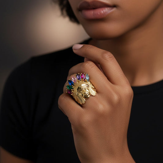 Indian Chief Rainbow CZ - 10K Yellow Gold - Variation