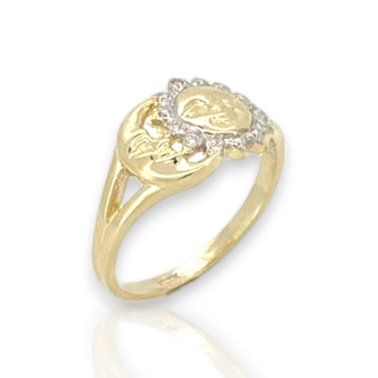 Diamond Cut Moon & Sun Face Ring Real - 10K Yellow Gold