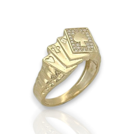 Poker Cards CZ Ring - 10K Yellow Gold