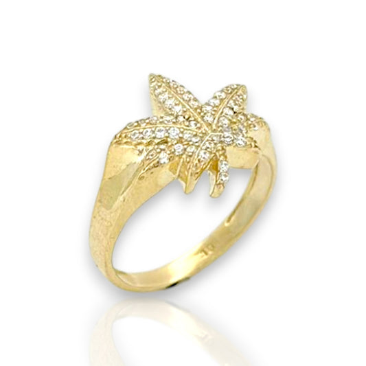 Marijuana "Weed" Ring CZ - 10k Yellow Gold