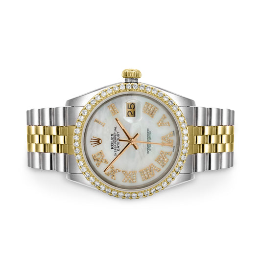 Rolex Datejust Diamond Bezel Watch 36mm Mother Of Pearl Roman Diamond Dial | 1.75ct