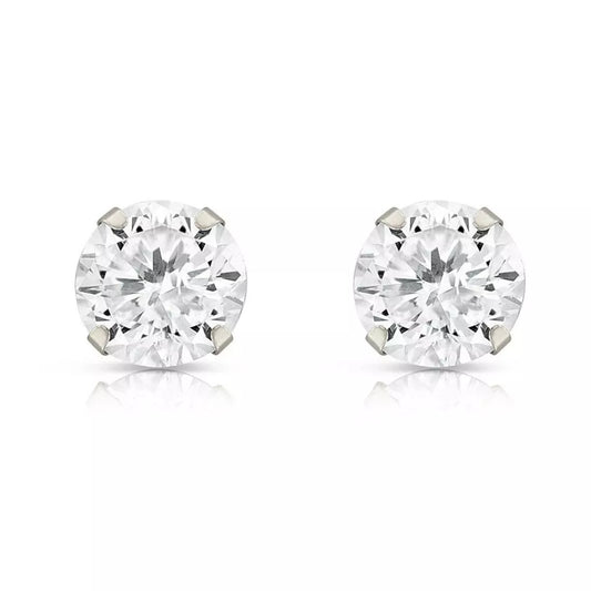 14k White gold round bright clear CZ martini prong set stud earrings1.5-10mm