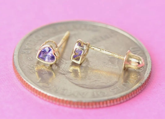 14K Solid Yellow Gold Heart Stud Earrings Birthstone 3MM X 3MM