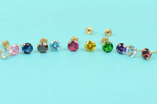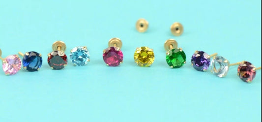 14K Solid Yellow Gold 3mm Round Birthstone Stud Earrings with screw back