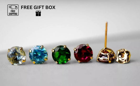 14K Solid Yellow Gold 4mm Round Birthstone Stud Earrings with screw back