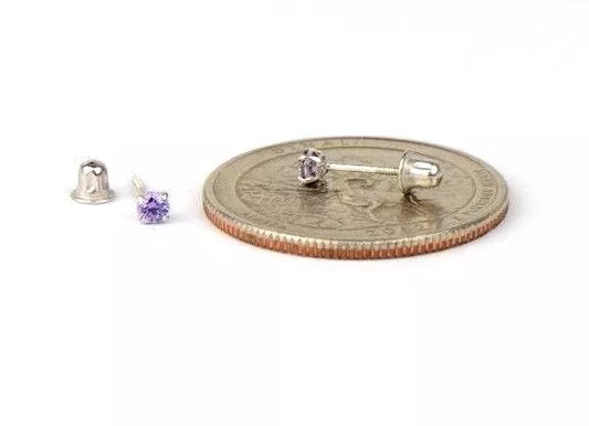 14K Solid White Gold 2.5mm Round Birthstone Stud Earrings with Screw Back