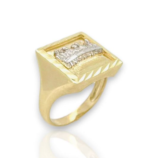 Anillo rectangular de la Última Cena - Oro amarillo de 10 quilates