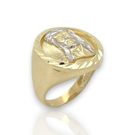 Anillo mediano con circonita cúbica y cabeza de Jesús - Oro amarillo de 10 quilates