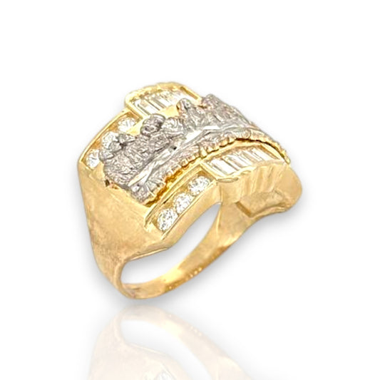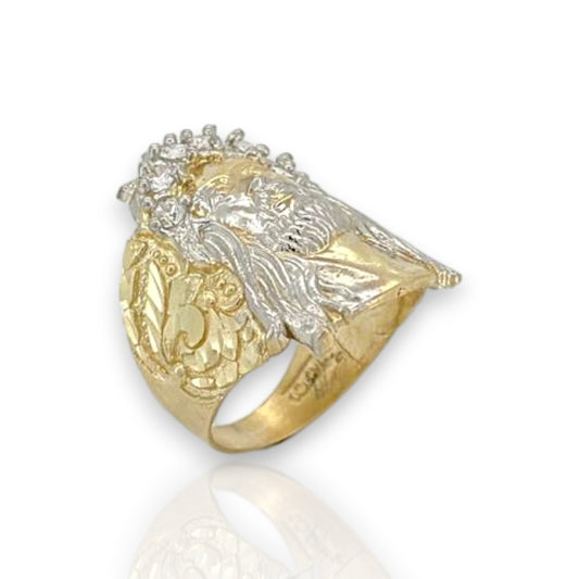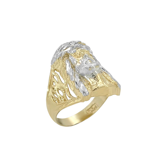 Anillo de dos tonos con cabeza de Jesús - Oro amarillo de 10 quilates