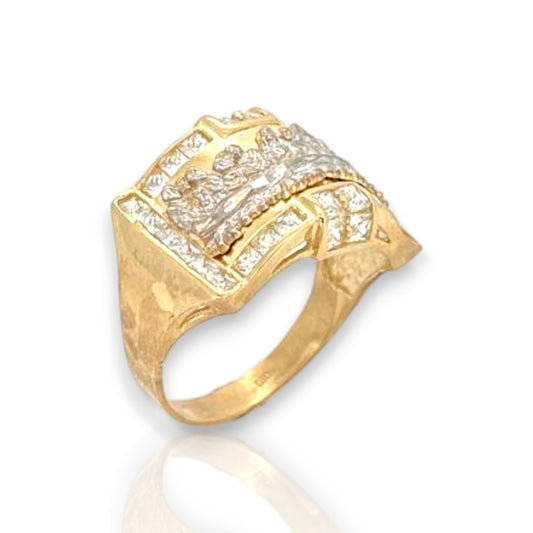Anillo con circonita cúbica de dos tonos de la Última Cena - Oro amarillo de 10 quilates