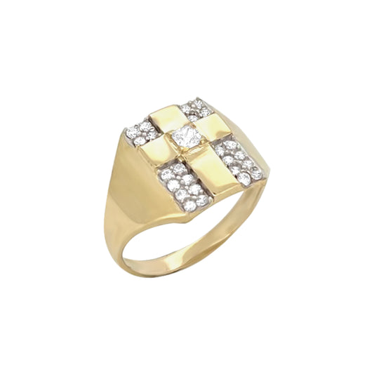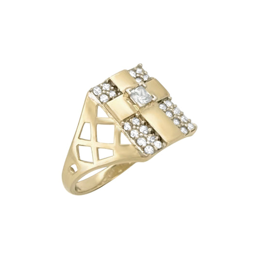 Anillo con cruz CZ - Oro amarillo de 10 quilates