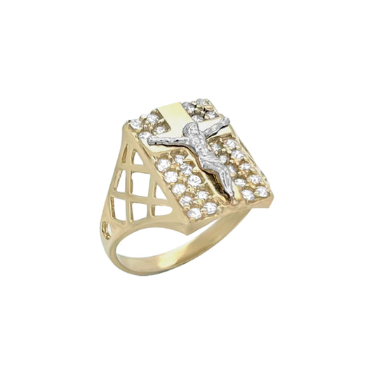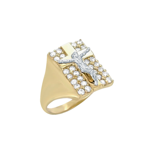 Anillo con crucifijo cruzado y circonita cúbica - Oro amarillo de 10 quilates