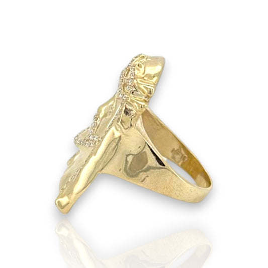 Cabeza de Jesús con anillo CZ - Oro amarillo de 10 quilates