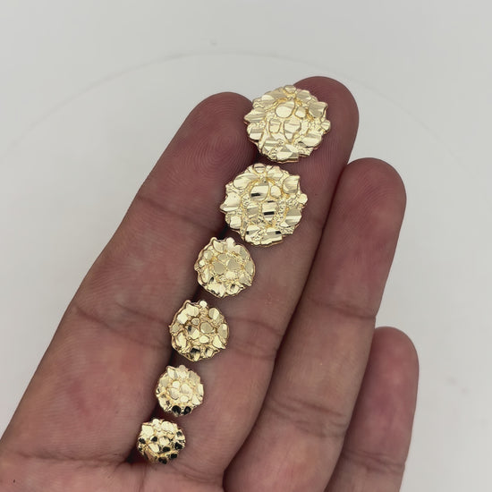 Round Nugget Stud Earrings - 10K Yellow Gold