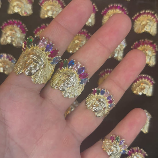 Presentamos nuestro cautivador colgante mediano con circonita arcoíris de jefe indio en oro amarillo de 10 quilates, sólido, un símbolo de fuerza y ​​orgullo cultural. Elaborado con precisión, este colgante presenta un diseño de jefe indio mediano adornado con coloridas circonitas cúbicas, bellamente engarzado en oro amarillo macizo de 10 quilates. Abrace su poderosa belleza y llévela con orgullo como una significativa declaración de herencia.