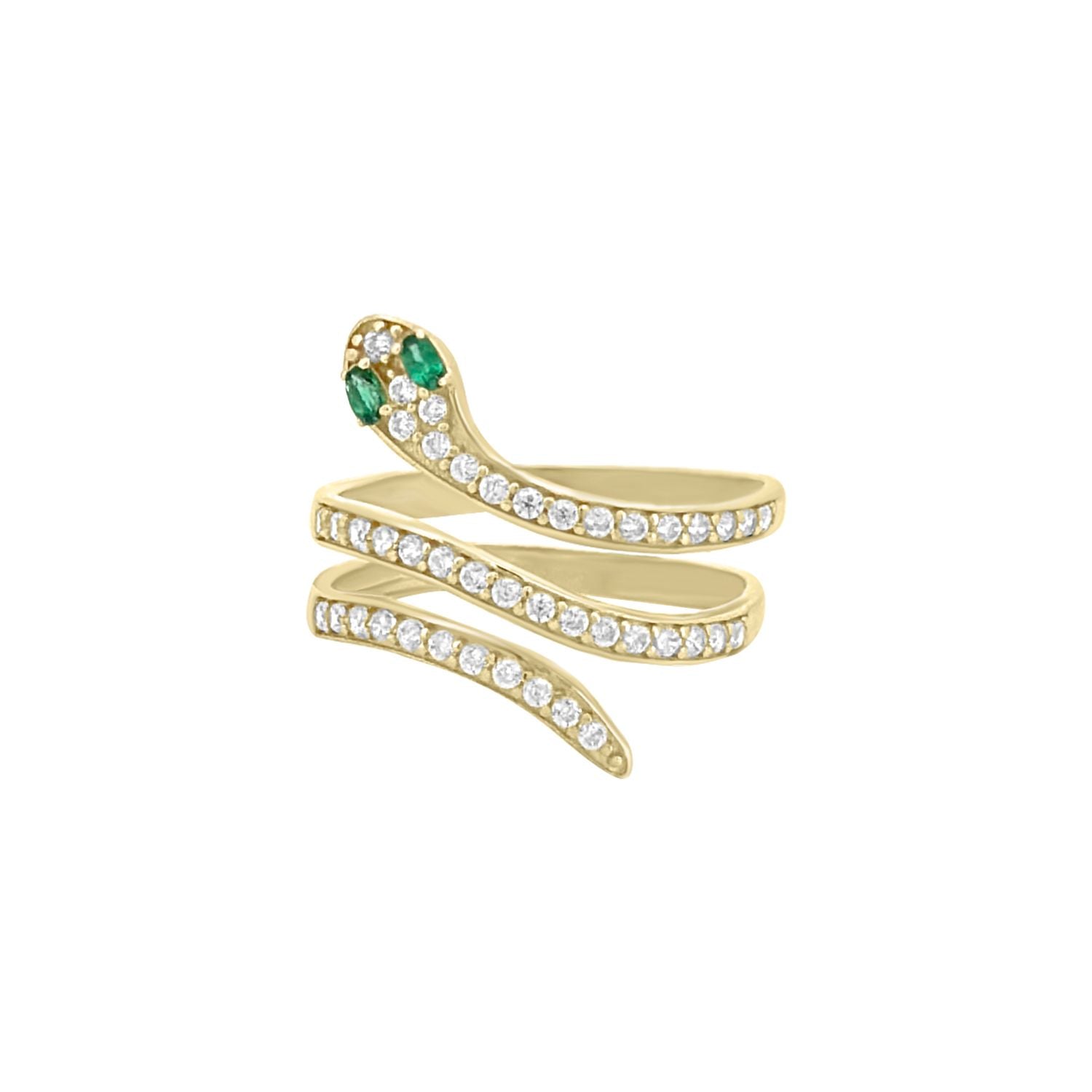 Add an edgy touch to your collection with the Snake CZ Ring, meticulously crafted from 10K yellow gold. This striking ring features a detailed snake design, symbolizing transformation, power, and protection. The body of the snake is adorned with radiant cubic zirconia stones, adding a captivating sparkle to the bold, serpentine motif.