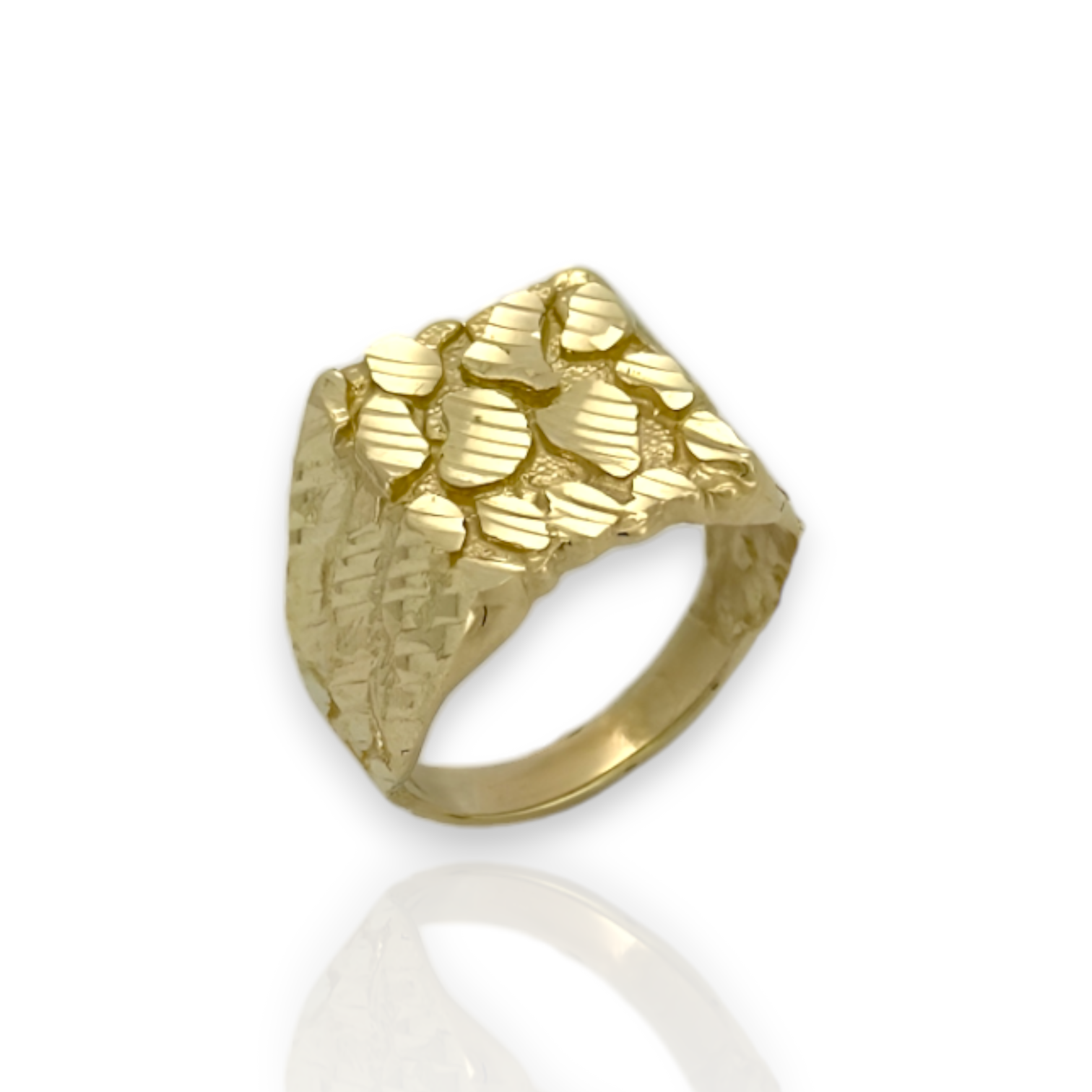 Medium Diamond Cut Nugget Square Ring - 10K Yellow Gold - Solid