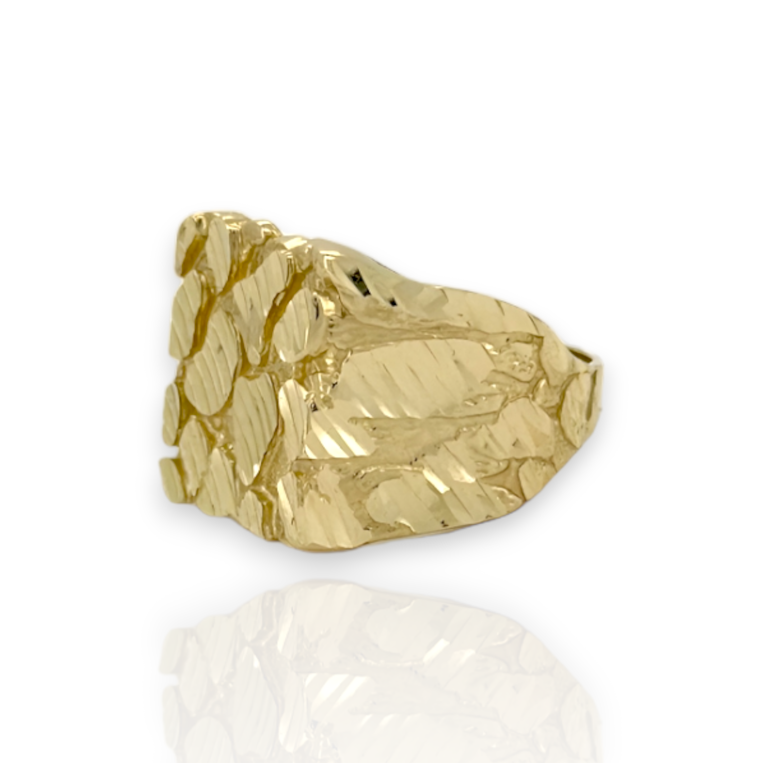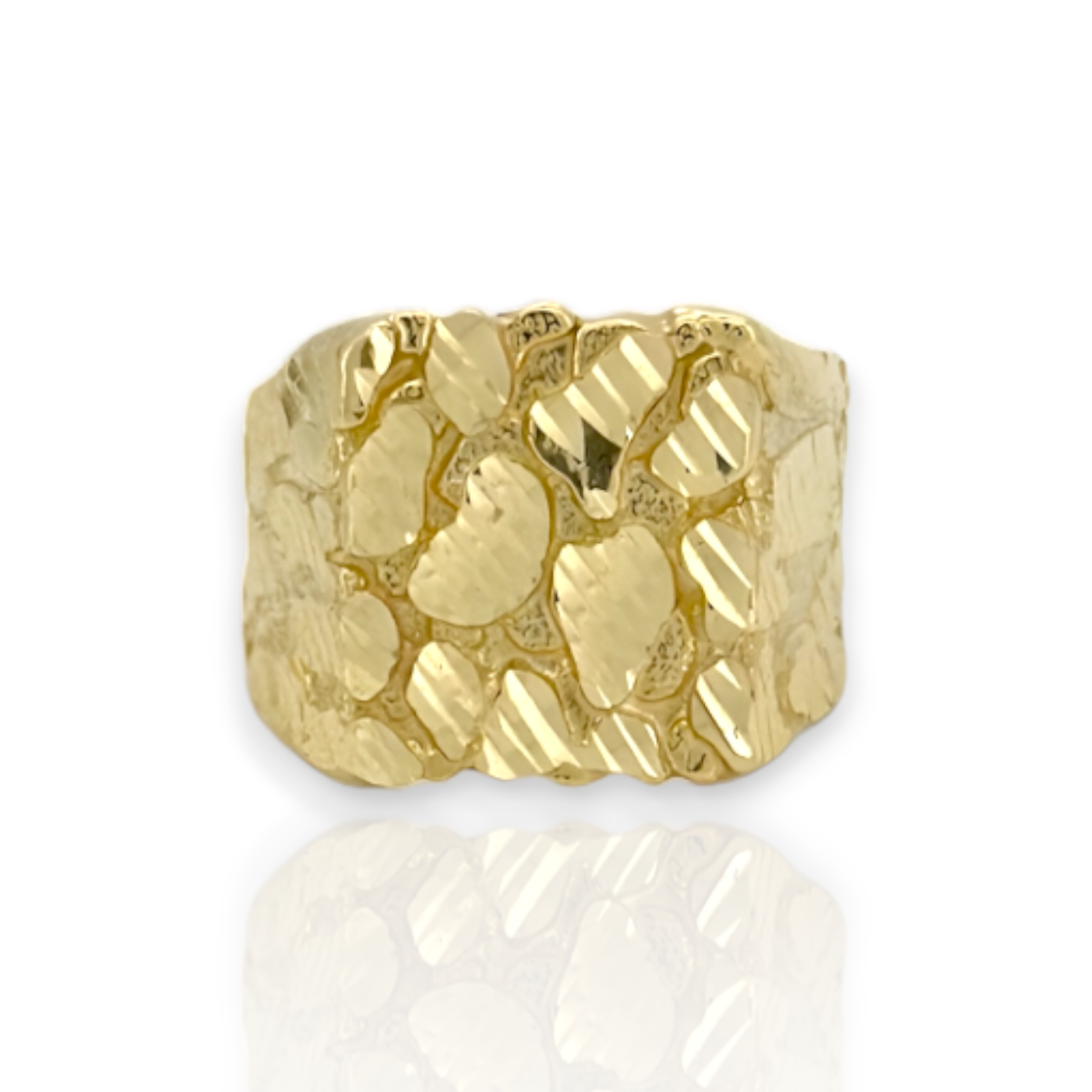 Introducing our impressive 10K Diamond Cut Medium Nugget Ring for Men, a stunning and versatile piece that combines sophistication with a touch of rugged charm. Crafted with meticulous attention to detail, this ring features a medium-sized nugget design with dazzling diamond-cut accents.