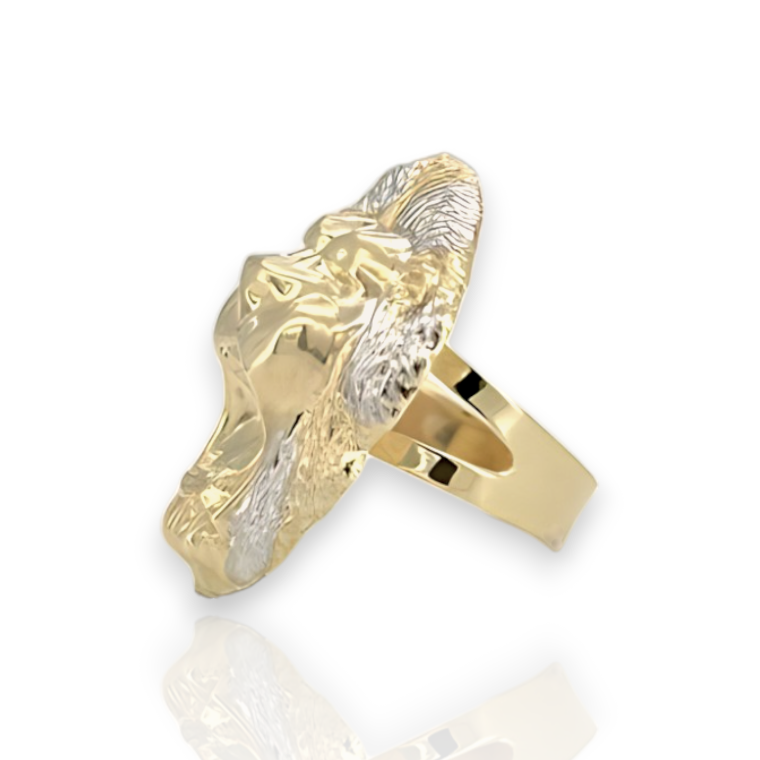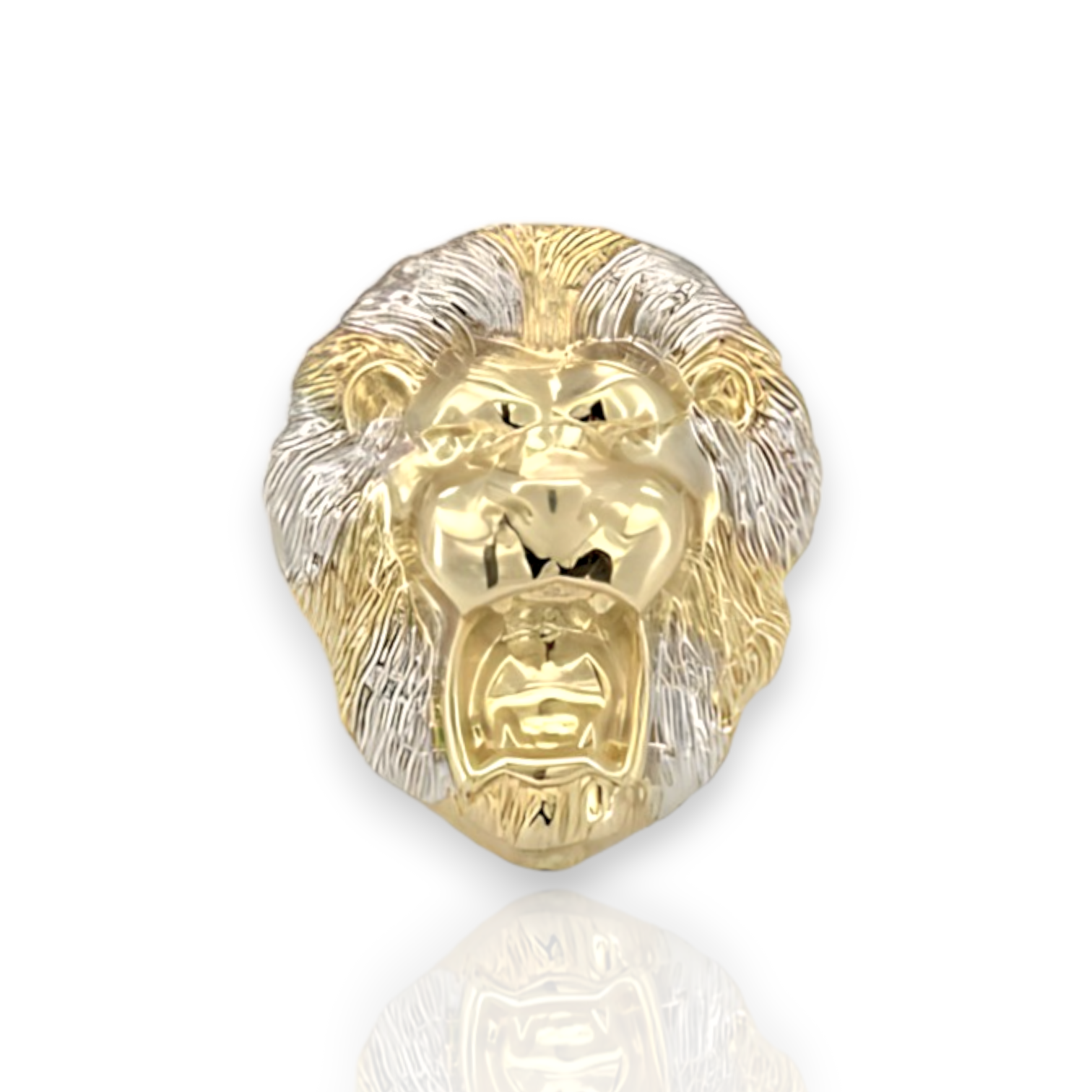 Screaming Large Lion Head Two Tone Gold Ring - 10K Yellow Pave